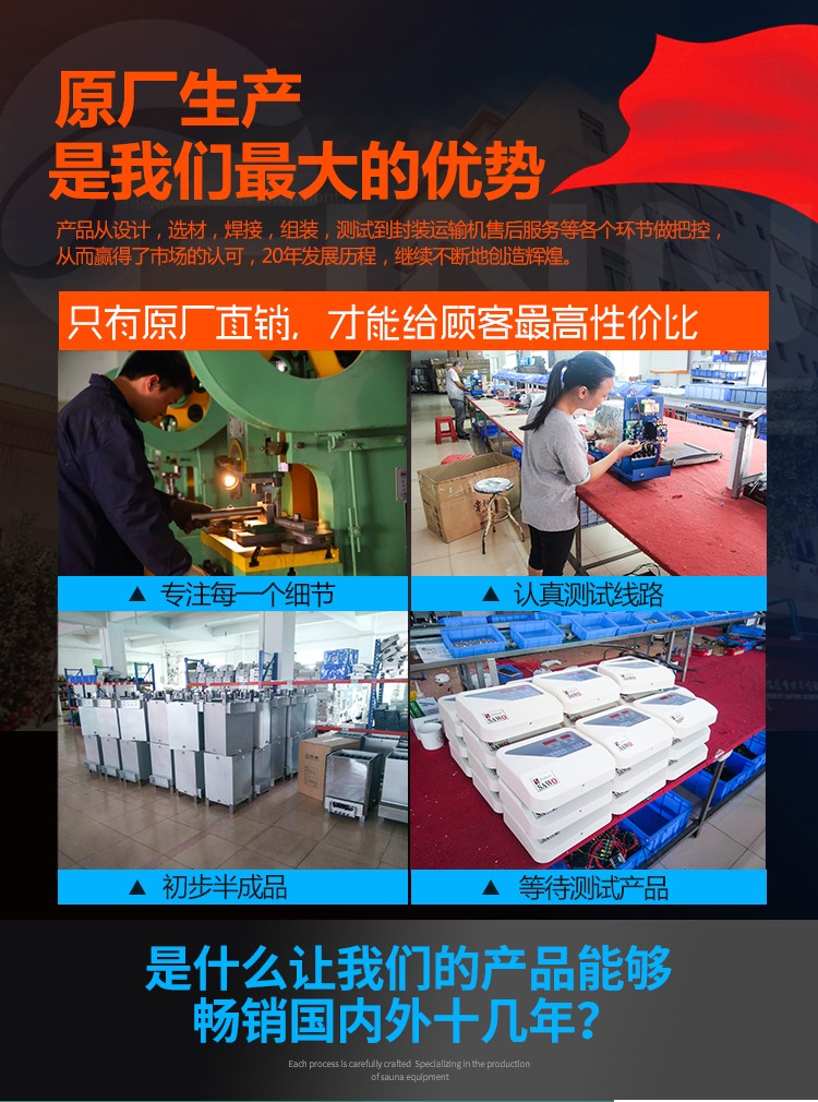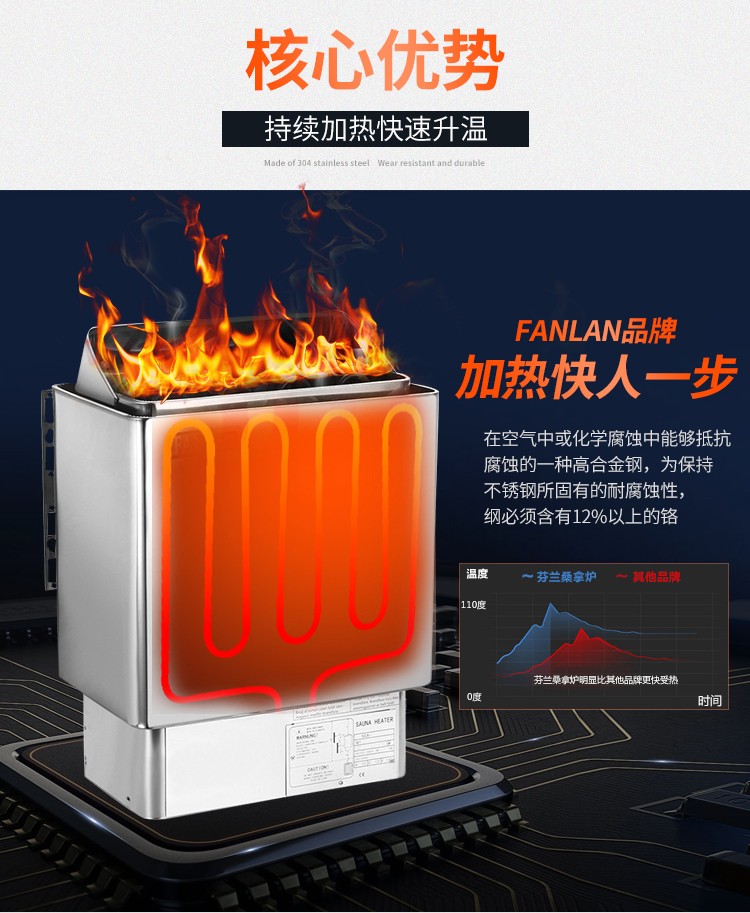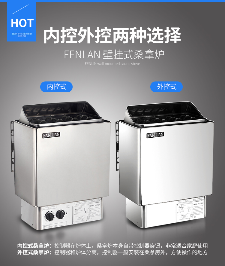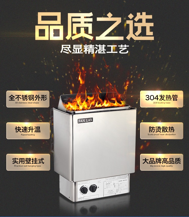 产品详情:桑拿炉,其实就是一种利用石头加热,来让室内温度上升的设备,有干蒸和湿蒸两大种类,在桑拿炉的室内待上一会就有大汗淋漓、酣畅不已的感受,有祛湿等保健作用。
