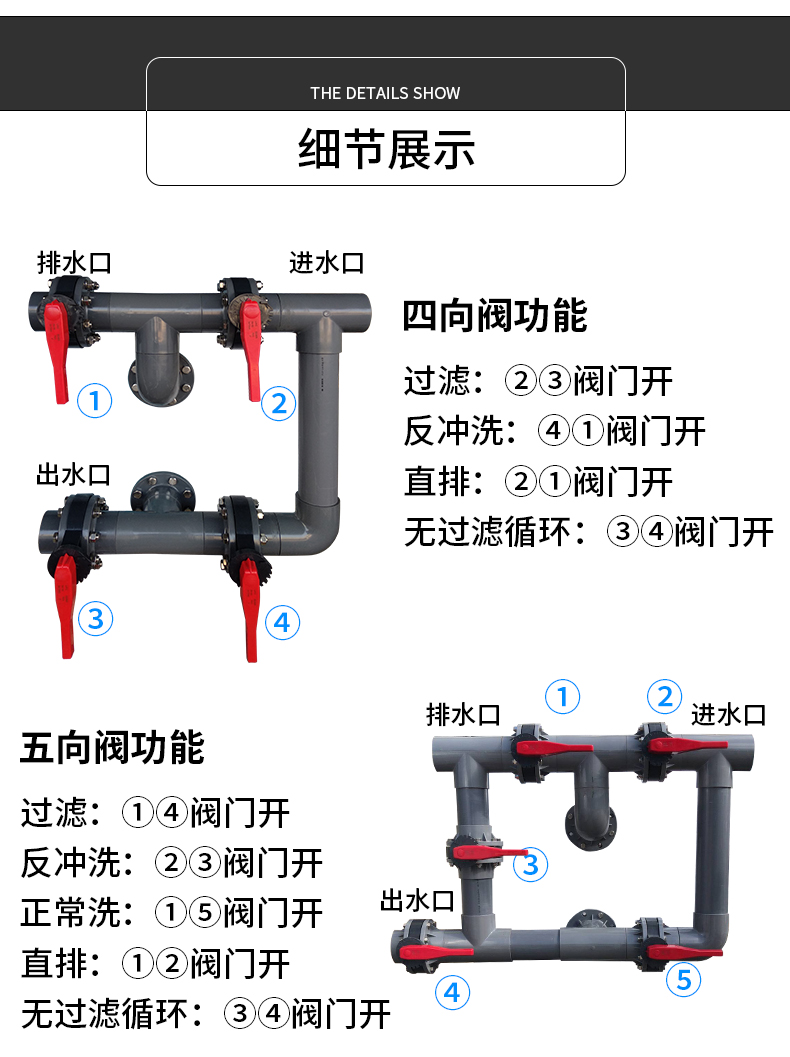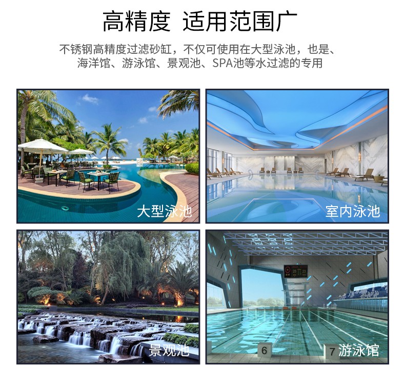 产品详情:砂缸工作原理:池水经过过滤器,微小的污物被沙床捕集滤除掉。过滤后的清水由过滤器底部经控制开关再由管道返回水池。这一整套程序都是连续自动的,且为过滤器和管道系统提供了完整的循环过程。